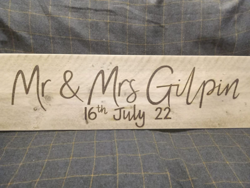 You can work with us to design a perfect board to display the wedding cake. We can source a suitable sized board and hand-burn an individual design and font of your choice. The wedding couple can keep the board as a reminder of their happy day. Previous boards that we have designed have included the wedding date and the names of the wedding couple or a design from the wedding invitations.